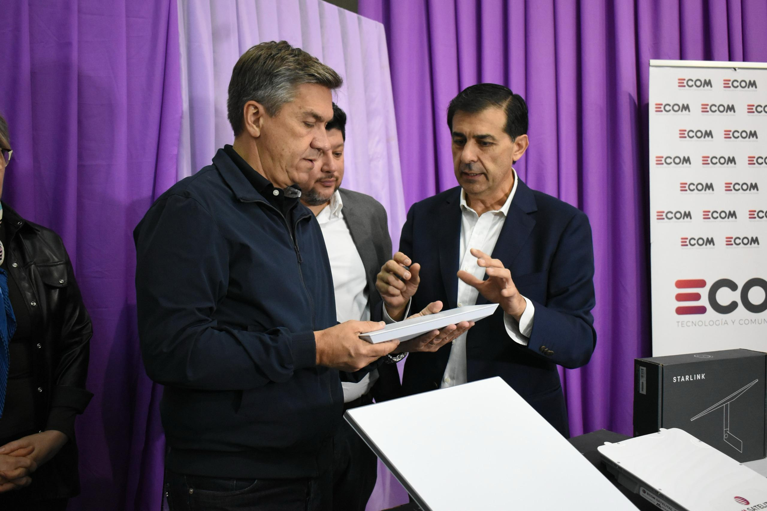 El gobernador Leandro Zdero, este sábado, en Charata entregó antenas satelitales Starlink para escuelas de zonas rurales...