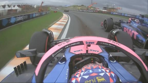 Todo sucedió en los últimos giros del trazado neerlandés, más precisamente a la salida de la recta principal. En la peraltada de la curva 3, en el mismo lugar donde dijeron adiós Hamilton y Leclerc, Gasly arrastraba un neumático duro con más de 40 vueltas encima y ya no pudo sostener la undécima ubicación con Ocon, quien lo superó en ese tramo y se encaminó a continuar con la vuelta. Mientras tanto, el francés se encontró a un costado con Colapinto, quien venía marcando buenos tiempos por haber aprovechado la retirada de Norris y el auto de seguridad posterior para poner neumáticos blandos y apostar a un cierre a pura velocidad.
