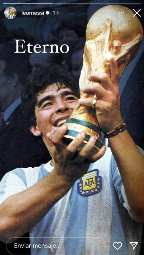 Por supuesto, no podía faltar el homenaje de Lionel Messi, otro de los grandes que han llenado de alegría a los argentinos y que lo sigue haciendo, siempre recordando a quien lo precedió. En una historia de Instagram, la Pulga publicó una foto de Diego alzando la Copa del Mundo en el año 1986 y escribió: «Eterno», llenando de emoción a sus seguidores.