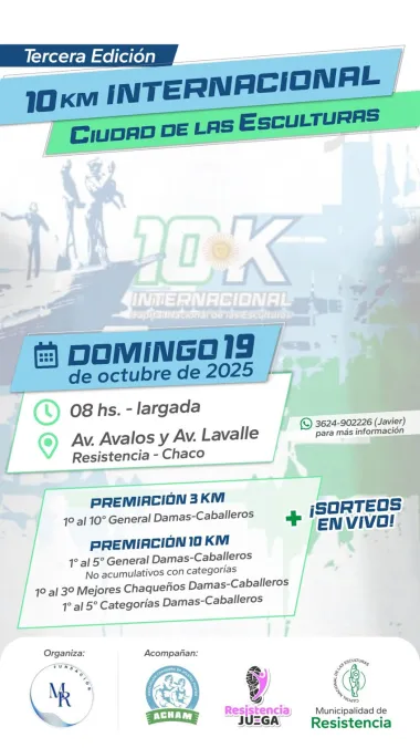 En esta edición, la «Maratón Internacional «Ciudad de las Esculturas» cambia su ubicación: la concentración de los corredores está prevista para las 6.30 en la intersección de las avenidas Ávalos y Lavalle. En tanto, la largada se realizará a las 8 del 19 de octubre.