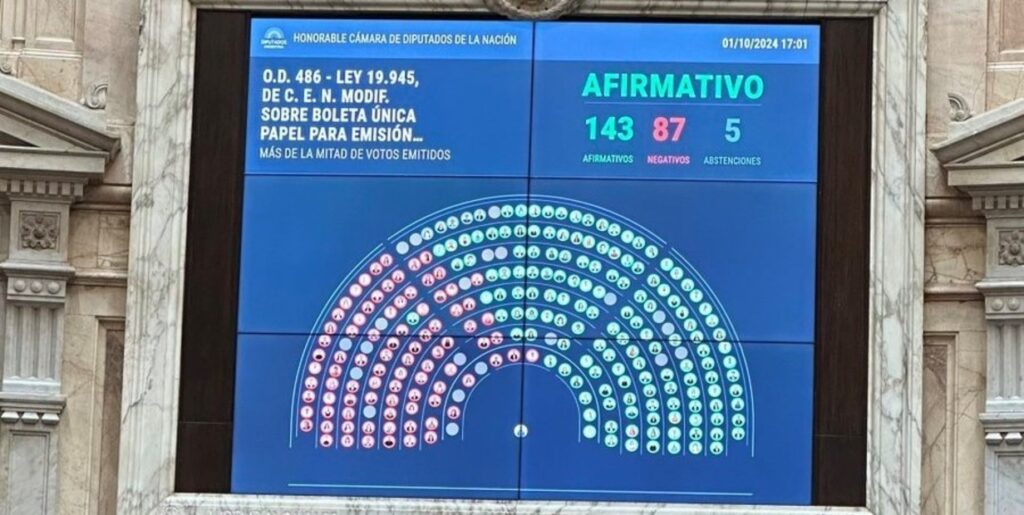 La presión de años, desde distintos sectores políticos, tuvo su premio en octubre de 2024. Ese mes se aprobó finalmente la implementación de la Boleta Única de Papel para las próximas elecciones nacionales. Un sistema que viene a terminar, o limitar al menos, el peso de los aparatos políticos para el reparto de boletas y el robo de las papeletas el mismo día de los comicios.