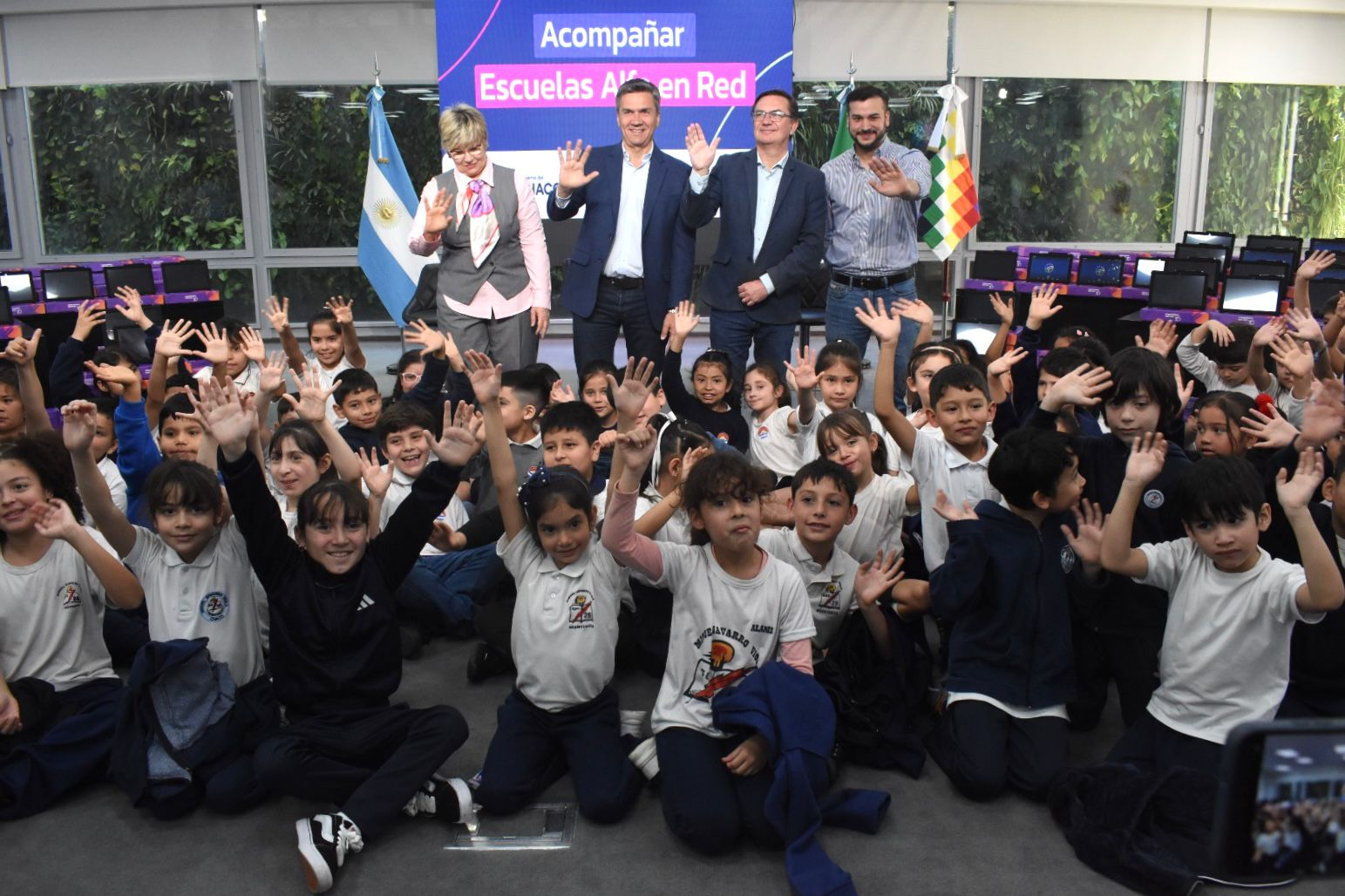 En la oportunidad, el gobernador Zdero y la ministra Naidenoff hicieron entrega simbólica de las tablets a niños de tercer grado de escuelas primarias de las Regionales Educativas 10 A, B y C, incluidas en Alfa en Red, que tiene como propósito mejorar los niveles de lectura y escritura, garantizando que los estudiantes puedan desarrollar las habilidades de alfabetización esenciales para su trayectoria escolar, mediante el uso estratégico de la tecnología dentro del compromiso ciudadano por la Alfabetización.